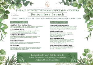 Includes the choice of 1 Large plate or 2 small plates. Unlimited drinks for 90 mins include: